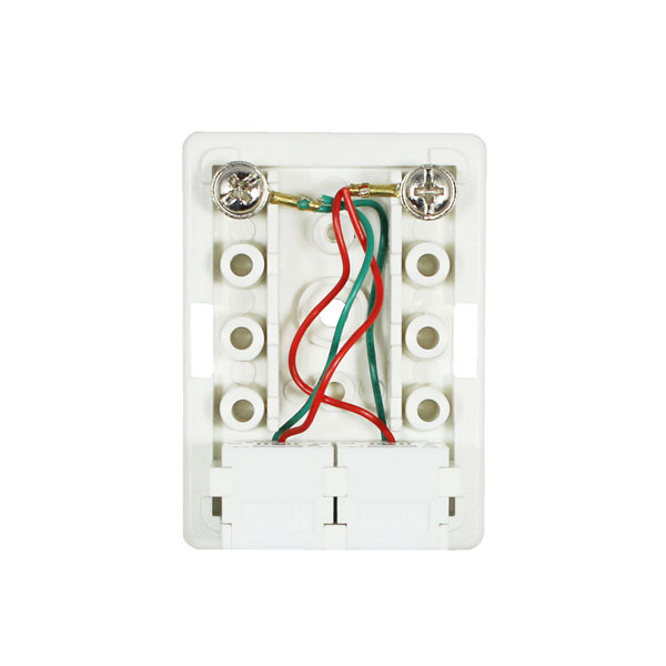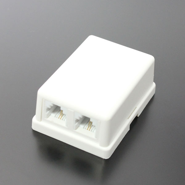 モジュラーケーブルをスッキリ配線 、6極2芯に対応した1回線を2ポートに分配するRJ11/12モジュラーローゼット(端子箱)(コンデンサ無し)です