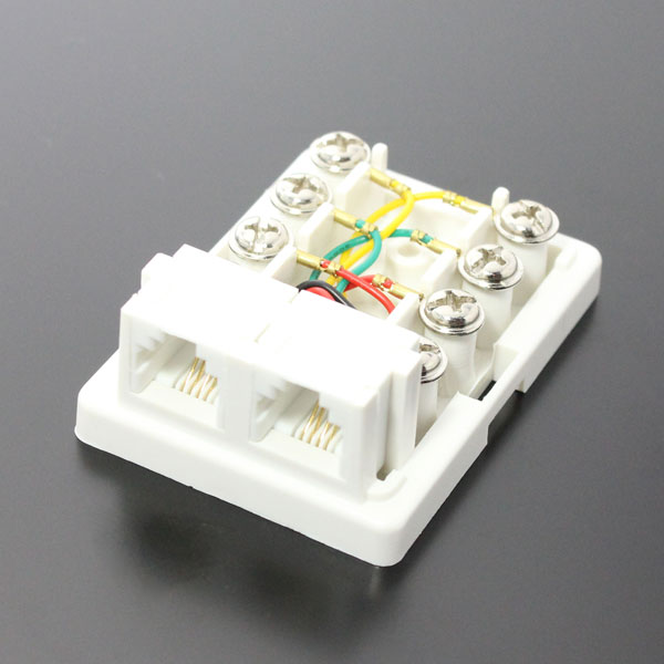 モジュラーケーブルをスッキリ配線 、6極4芯に対応した2回路用RJ11/12モジュラーローゼット(端子箱)(コンデンサ無し)です