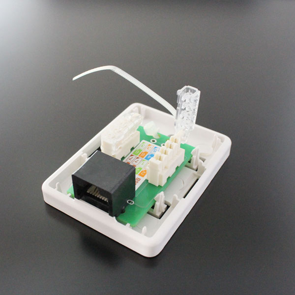LANケーブルをスッキリ配線 、CAT6(1000BASE TX)、CAT5E(1000BASE T)に対応した1ポートのRJ45ローゼットです