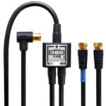 入力ケーブル 1.5m/出力ケーブル0.2m×2本付きで地デジ端子とBS/CS端子に簡単取付け